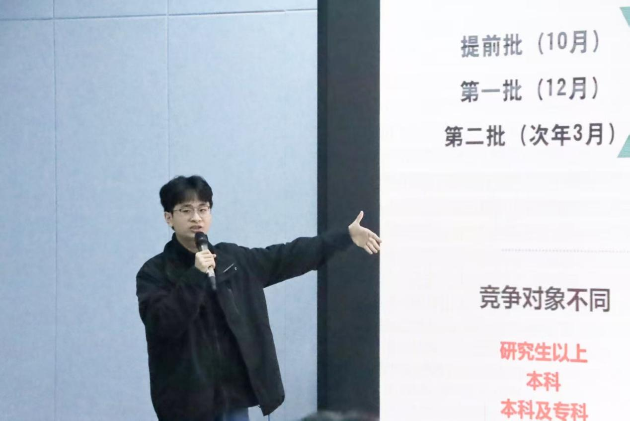 学长还详细拆解了文理科竞赛的差异,说明理科竞赛更注重项目深度,文科生可以依托表达、PPT制作、文字梳理等自身优势,在项目中打造差异化求职竞争力。针对国家电网备考的核心环节,他从批次选择、志愿填报、笔试面试等方面进行了细致讲解,强调优先报考第一批、避开冷门省份、合理安排志愿顺序的重要性,同时指出笔试以行测、企业文化为主、难度偏低,应重点提升做题速度,面试则要保持严谨规范。最后,学长还送上珍惜大学时光、理性看待工作、珍视当下兴趣、允许自己迷茫四点真诚建议,鼓励大家从容探索未来的发展道路。同学们纷纷表示,学长的分享贴近实际,既解答了大家在求职备考中的诸多疑惑,也为后续的学习和职业规划提供了明确方向。