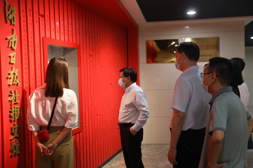 刘建民一行参观了湖南日报社报史馆、中央厨房、红网融媒体中心,详细了解两家媒体发展脉络轨迹、发展模式和发展成绩。通过观看宣传片,全面了解两家媒体在融媒体中心建设、采编流程、栏目建设、品牌打造等方面的情况。