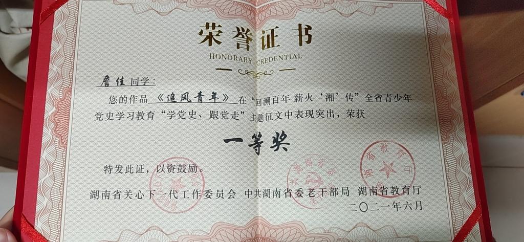 永利集团88304官网文学与新闻传播学院积极响应省关工委号召,组织开展了系列活动,荣获“优秀组织奖”。文学与新闻传播学院詹佳同学荣获主题征文一等奖,刘师赤同学荣获主题征文二等奖,楚艳鸽和刘洋荣获“优秀指导老师奖”。