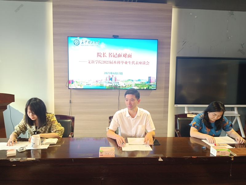 6月13日下午,文新学院召开“院长书记面对面”第五期——2023届本科毕业生代表座谈会,院长刘建新、党委副书记刘莎、副院长戴钰、新闻系主任赵继光、毕业生辅导员李婵出席,2023届本科毕业生代表参加。座谈会由刘莎主持。