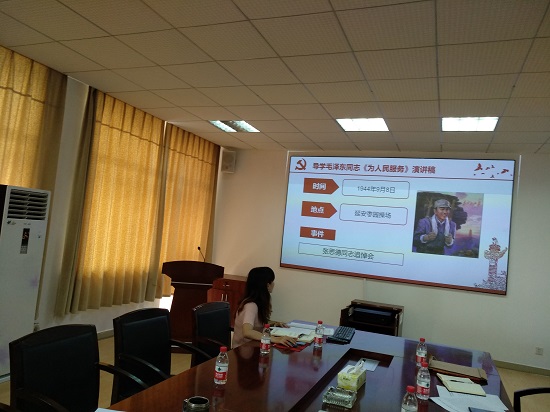 党委副书记王双导学了毛泽东同志于1944年9月8日在延安枣园操场张思德同志的追悼会上发表的《为人民服务》的演讲稿,详细介绍了该演讲发生的时代背景、重要意义,并结合高校工作实际阐述了党员干部的担当和对党忠诚的问题。