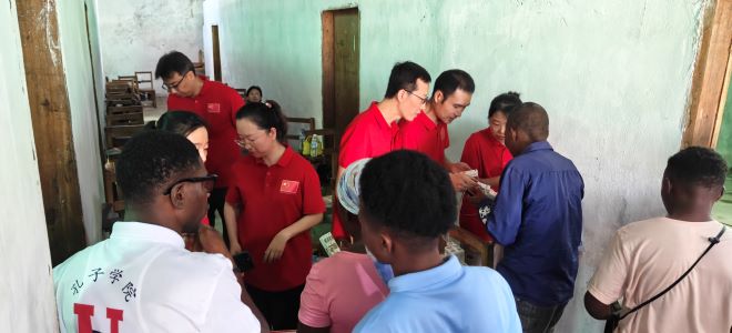 2024年5月24日,在六一儿童节即将来临之际,利比里亚大学孔子学院携手第16批援利医疗队,在利比里亚大学孔子学院教学点中利友谊学校共同举办了一场口腔卫生健康讲座,并随后为该教学点全体教职工进行了义诊。利大孔院教师、医疗队全体队员及中利友谊学校全体师生一百余人参加活动。