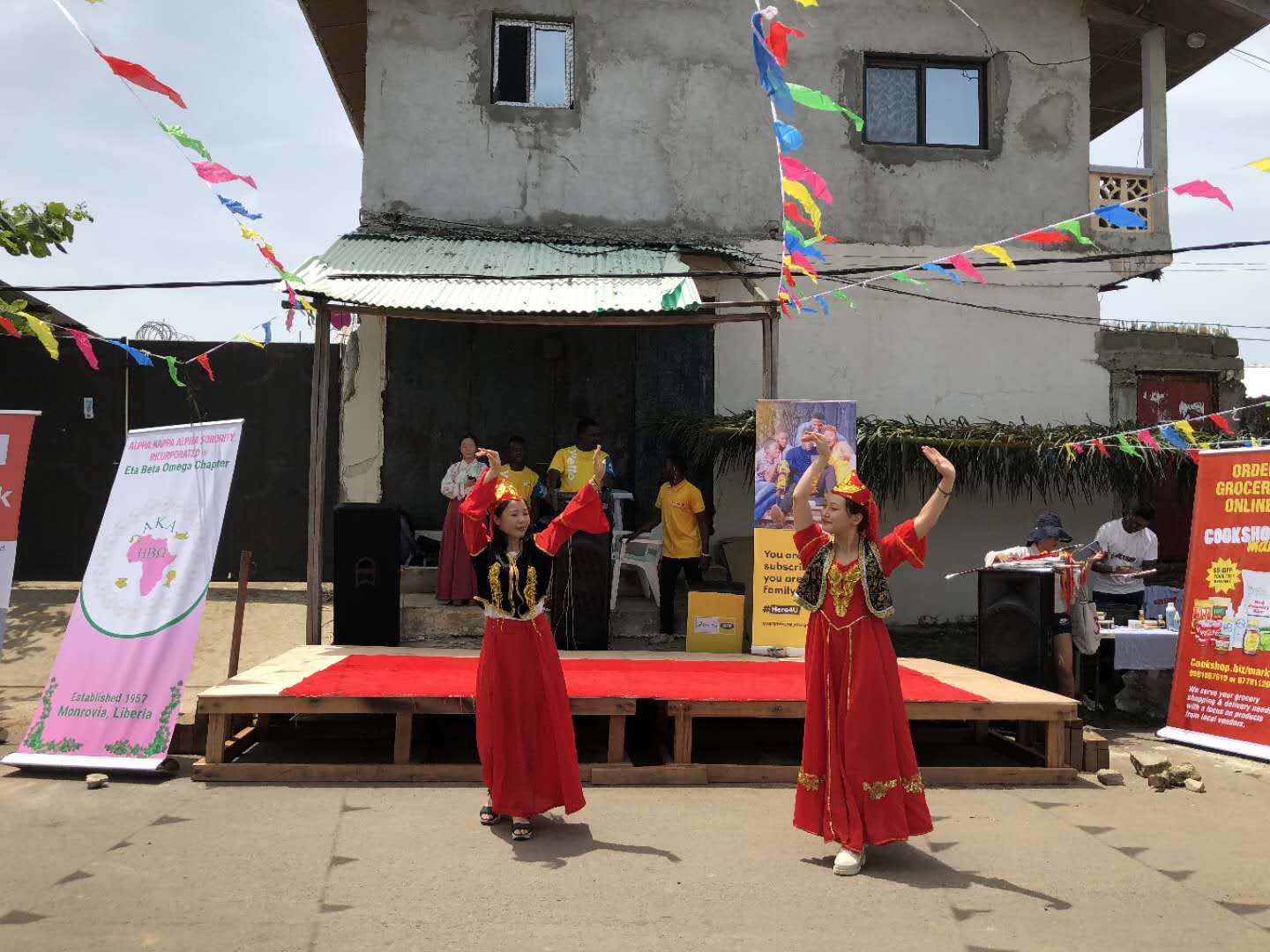 当地时间4月20日,利大孔院受利比里亚当地社团(阿尔法卡帕阿尔法女生联谊会,Alpha Kappa Alpha Sorority, Inc.)邀请参加了于蒙罗维亚举行的“利比里亚风情”商业文化节。该文化节旨在通过展示售卖当地各类美食和特色手工艺品,宣传利比里亚日益丰富的食物和文化,促进当地商业繁荣,在当地影响不俗。孔院老师马力平、贺云静、王倩和付平在此次文化节上表演了精彩的汉文化节目。