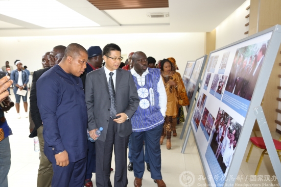 当地时间6月29日,中国电影招待会暨改革开放40周年图片展在利比里亚首都蒙罗维亚TM影院举行。此次活动由中国驻利比里亚大使馆主办,得到利比里亚大学孔子学院的大力支持。利执政党民主变革联盟党(CDC)主席莫卢、利比里亚大学公共关系副校长诺里斯、区域规划研究所主任玛维亚、安南和平调解研究所主任桑德、中国驻利比里亚大使付吉军出席,民主变革联盟党、利比里亚大学师生、留华同学会、利中友协、中资机构及华侨华人代表等200余人参加了活动。