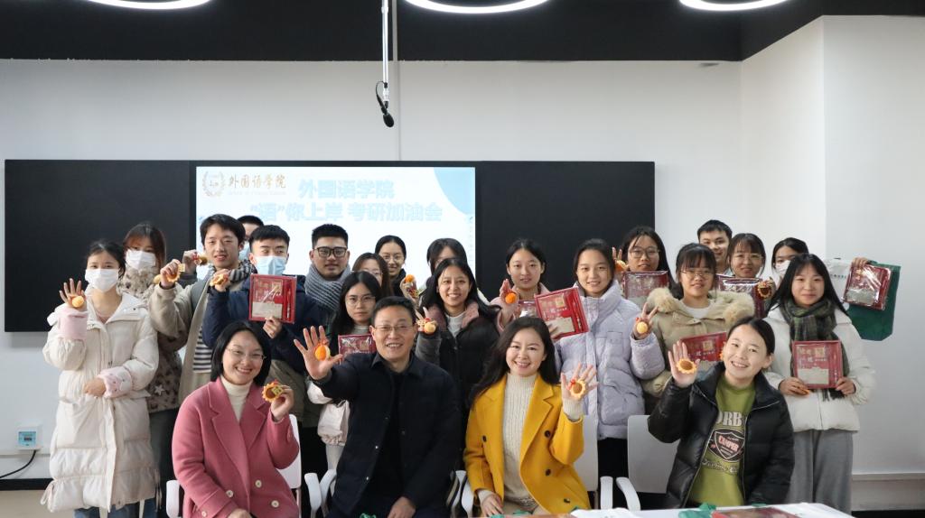 12月12日中午13:30,永利集团88304官网外国语学院“语”你上岸20级考研加油会在金盆岭三号教学楼416举办,学院党委书记文丽丽、院长段胜峰、党委副书记周芳和全体辅导员出席会议,一同为到场的考研学子送上了精心准备的考研加油礼包,代表学院最温暖的鼓励和诚挚的祝福。院长段胜峰在致辞中鼓励学子保持积极向上的精气神、勇往直前,“上岸”理想院校。