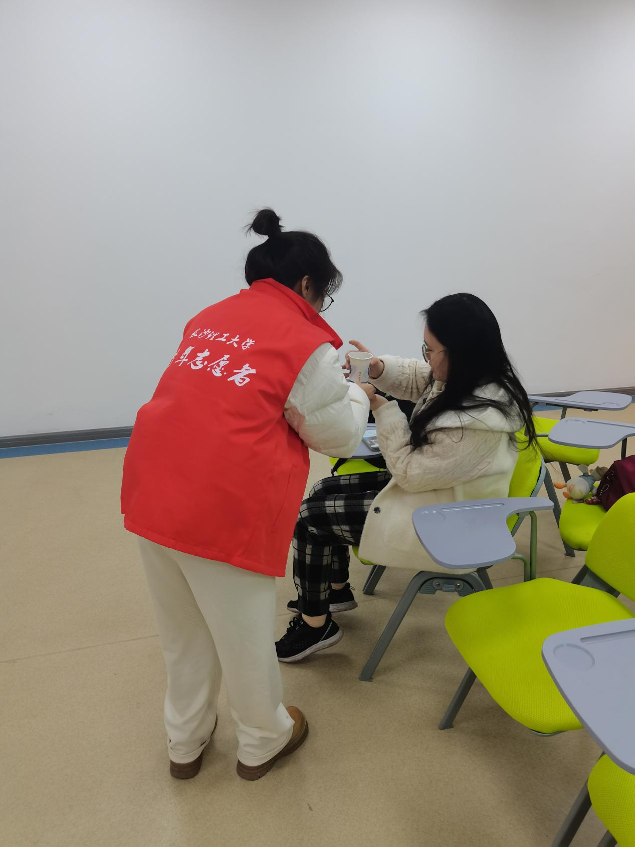 学院为考生在云塘校区设置爱心午休场所,志愿者提供全程护考服务。午休时间,学院在为考生提供不间断的咖啡、茶水、饼干、暖宝宝等爱心物资,处处体现着“实用”与“暖心”,蕴含着学院对考研学子的美好祝愿和真切关心。