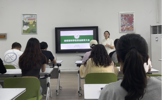 为加强安全管理,确保暑假留校学生的生命财产安全,7月11日下午15:00,外国语学院在三教220召开2024年暑假留校学生安全会议,学工办主任武巧琳主持,全体留校学生参加。