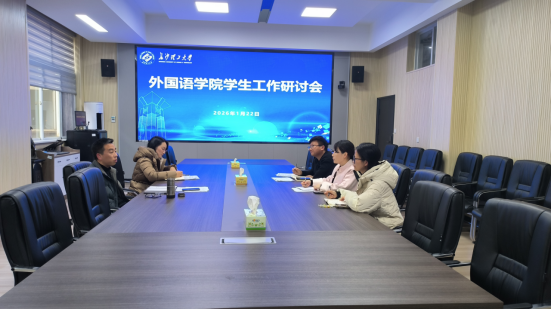 1月22日,外国语学院于三教214室举办学生工作研讨会,围绕立德树人根本任务,总结过去、谋划未来,推动学生工作高质量发展。学院党委副书记周芳主持会议,学院党委书记陈仁凯出席并讲话,全体辅导员参加研讨。