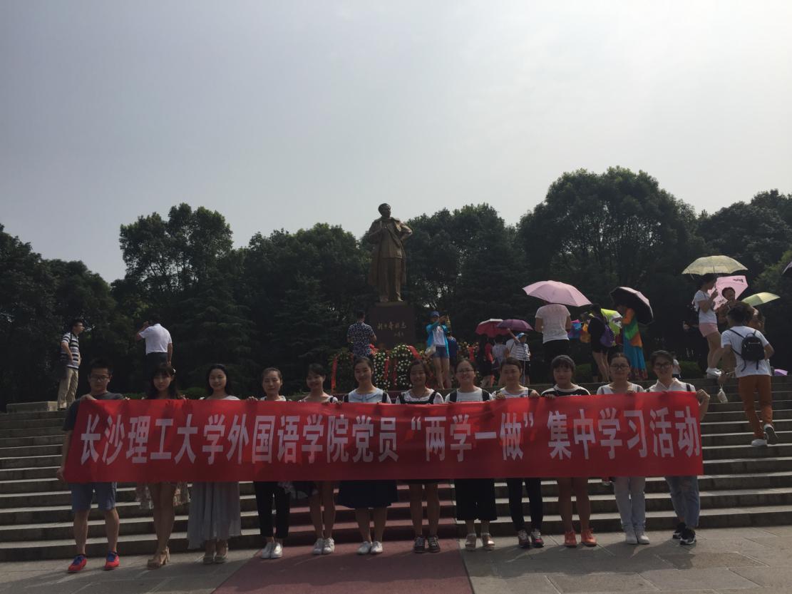 7月12日开展校外学习交流活动,全体党员前往宁乡、韶山参观刘少奇、毛泽东故居及纪念馆,学习红色文化,重温红色革命情。在实践过程中,纪念馆解说员向全体党员详细讲述两位革命领袖的生平经历和重要的历史变革,党员受益匪浅。其中本科生党支部在毛泽东主席铜像前献上花篮以表达深深的敬意。活动结束后,各位党员积极上交学习心得和学习总结,使暑期集中学习活动圆满结束。