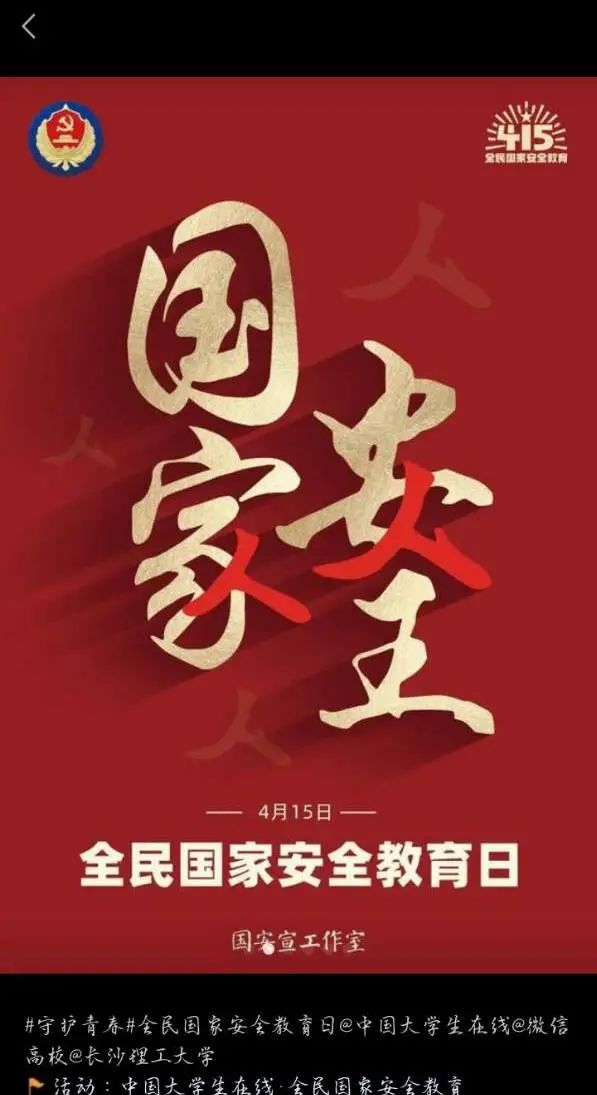 其中,英语2101班组织观看了“千万师生同上一堂国家安全教育课”公开课,让同学们深刻体会到大学生在践行国家安全的重要性。翻译2001班和翻译2002班组织线上观看“高校国家安全教育教学风采展示活动”作品,这让大安全理念在我们心中更加深刻。翻译2101班、翻译2102班和英语2102班开展了“国家安全教育主题短视频线上接力活动”,通过原创视频的创造,同学们更加深入了解到了国家安全的重要性。英语2001班和英语2002班组织学生线上观看了“反邪教警示教育进校园”宣传作品,提高了防范邪教意识和能力。19级各班级组织学生观看了“国开大讲堂·国家安全教育公开课”,这树立了同学们的大国国防观念。与此同时,外国语学院的同学们还积极以个人账号参与了“微博#国家安全日#话题”互动。