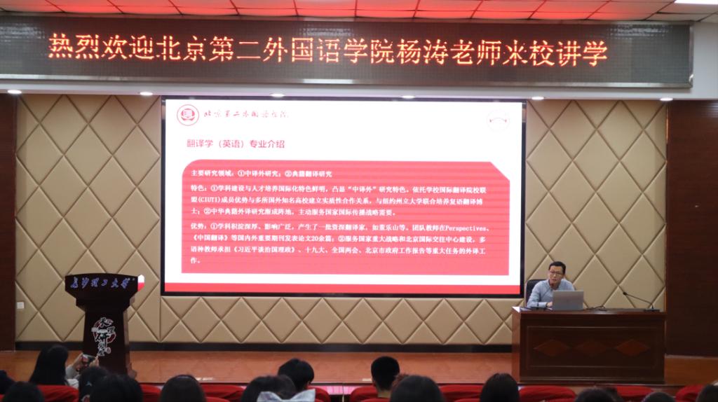 最后,杨涛老师在学生问答环节中解答了关于学生学业水平要求、学院学制与修业年限、课程设置等问题,并在结尾表示热烈欢迎同学们报考北京第二外国语学院英语学院。