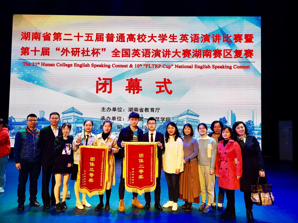在10月27日结束的湖南省第二十五届普通高校大学生英语演讲比赛暨第十届“外研社杯”全国演讲大赛湖南赛区复赛中,永利官网代表队获得竞赛一组团体二等奖(第一名),城南学院代表队获得竞赛二组团体三等奖。其中永利官网汽车与机械工程学院阳学恒获得非专业组个人一等奖(第二名),经济与管理学院陈颖仪获得非专业组个人三等奖,外国语学院英语1701班陈康获得专业组个人三等奖。城南学院市场营销专业陈宜群,李姗姗获得非专业组个人三等奖,方涵娜获得专业组个人三等奖。指导老师为张志武、刘力、潘莹、孙文娟、彭娅以及王浩萍。