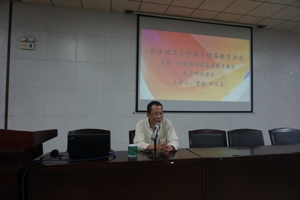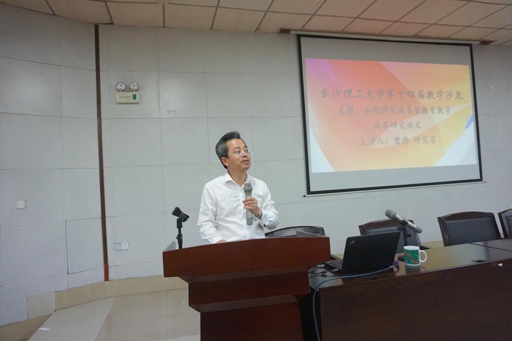2018年10月9日下午,由永利集团88304官网高等教育教学评估与研究中心及教务处主办、外国语学院承办的永利集团88304官网第十四届教学沙龙活动在文科楼圆厅A100成功举办。本次教学沙龙特邀华中科技大学《高等教育研究》杂志副主编曾伟研究员主讲,我校高等教育教学评估与研究中心主任袁剑波主持,外国语学院院长段胜峰、副院长黄坚、黄月华、武俊辉出席,外国语学院全体教师以及来自学校其它16个教学院共200余名教师代表参加。