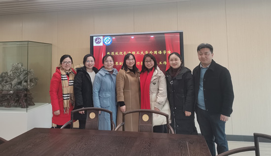 2021年12月29日上午,外国语学院副院长季红琴、英语教研室主任罗娟、副主任谭莲香和实习指导教师龙晓翔一行前往本院实习基地湖南外国语职业学院洽谈进一步深入合作事宜。