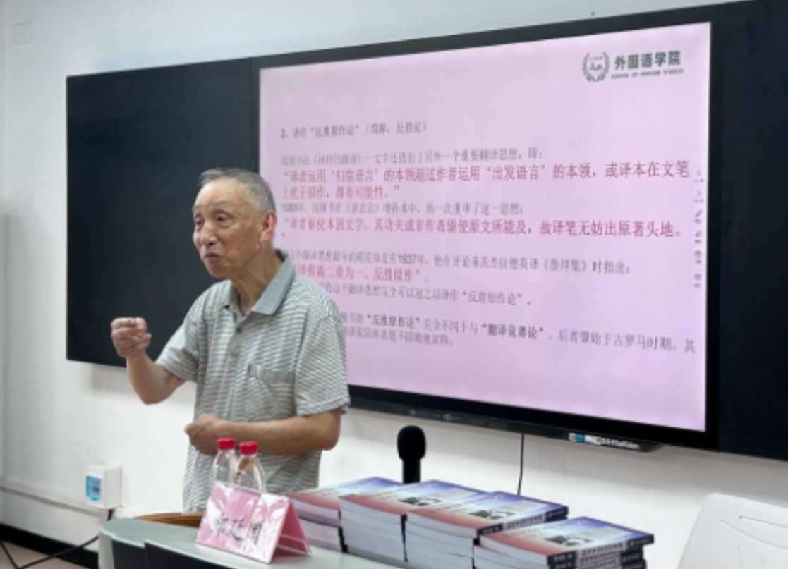 “从事教书育人和关心下一代工作是我的毕生志愿,此次能够为新生上开学第一课我感到非常高兴,希望能让更多学生通过我的课堂感受到翻译的魅力与精髓,帮助更多人学好翻译。”9月19日下午15:00,78岁的银发老人郑延国教授在永利集团88304官网金盆岭校区3教416多媒体教室给全体23级研究生新生和部分本科生开展云影讲坛讲座,讲授入学教育第一堂学术课——钱钟书学术思想和翻译两论。