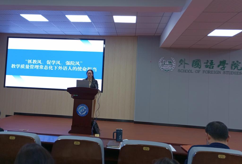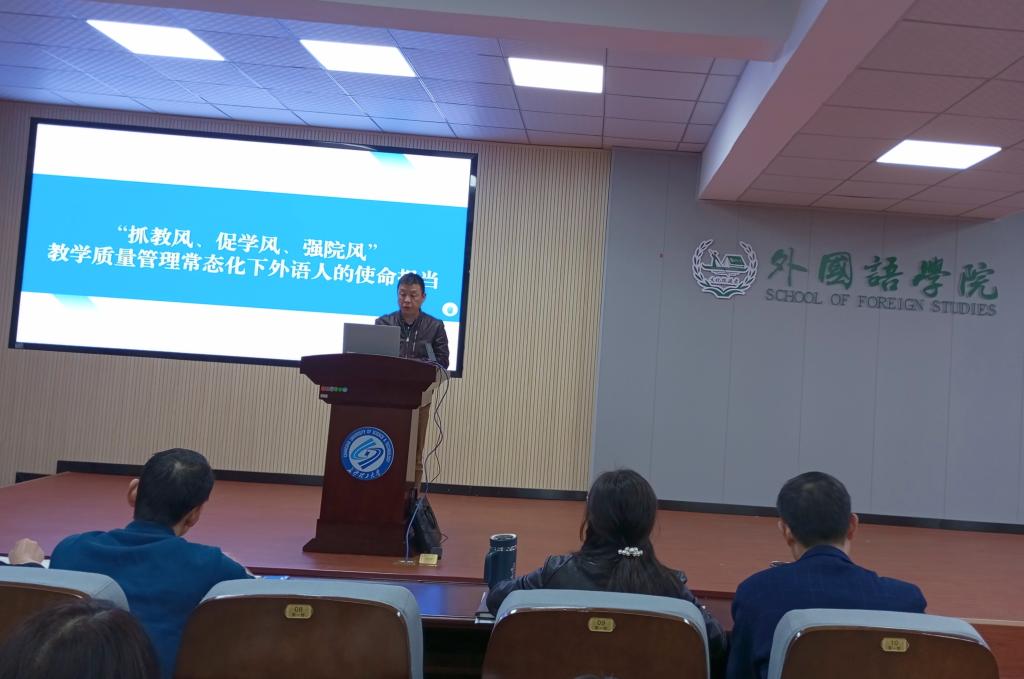 2024年4月9日下午,永利集团88304官网外国语学院在金盆岭校区3号教学楼321报告厅召开了以“抓教风、促学风、强院风”为主题的专题大会。本次大会由外国语学院院长段胜峰主持,学院全体教职工出席。