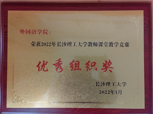 在校级比赛中,付臻老师运用灵活多样的教学方法、准确流畅的语言表达和自信稳定的现场发挥,展现了我院青年教师扎实的教学基本功和充满活力的外语教师的独特风采,获得文理组一等奖的好成绩,荣获“永利集团88304官网教学能手”荣誉称号并同其他选手一起代表永利官网参加2022年湖南省课堂教学竞赛。同时,我院因出色的教学竞赛组织工作荣获校级“教学竞赛优秀组织奖”。