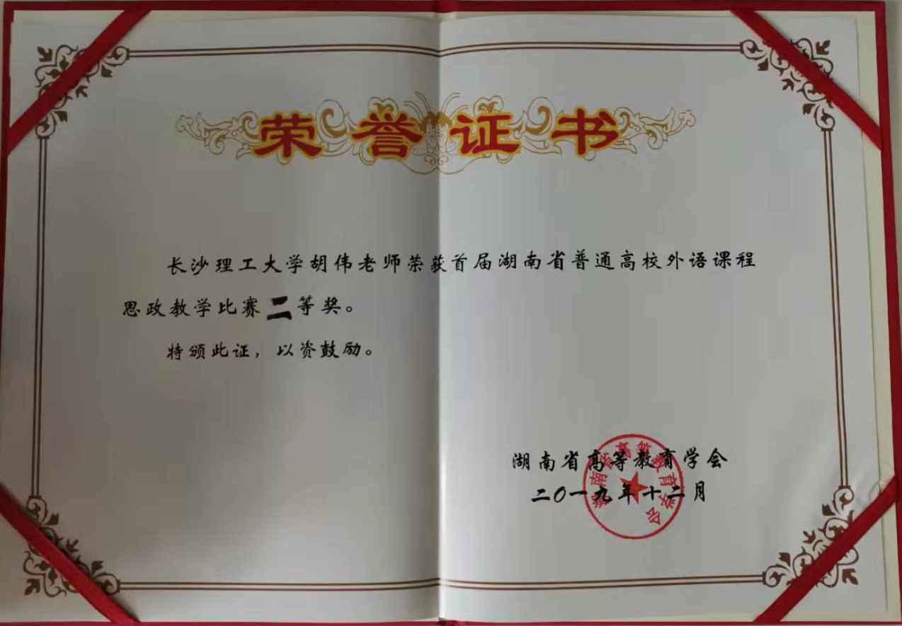 12月14-15日,在湖南农业大学举行的首届湖南省普通高校外语课程思政教学比赛中,我院外国语言文学系的胡伟老师获得二等奖。