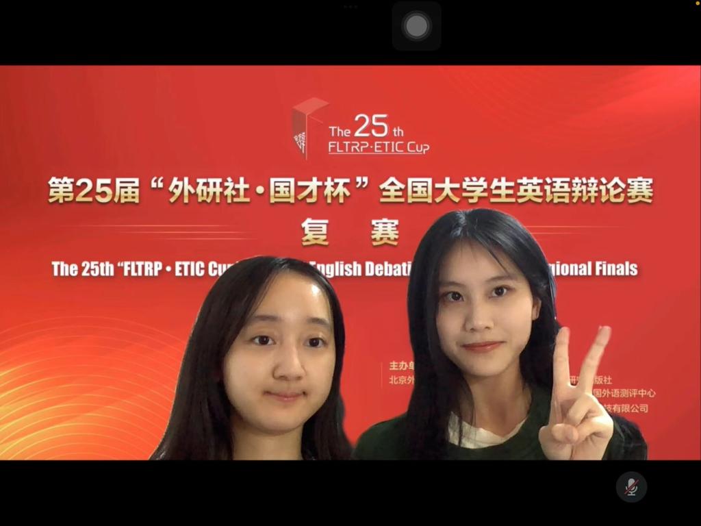 本届华南地区复赛共有来自福建、广东、广西、贵州、海南、江西、云南、湖北、湖南以及港澳台地区的104支高校队伍代表参赛。本次比赛通过线上方式进行,全程采用双机位,并设定了严格的比赛规则和程序,保证了比赛公平公正进行。在王浩萍老师指导下,由永利官网外国语学院翻译2002班刘志洋同学和陈祉姗同学组成的代表队,经过五轮积分赛和决赛,最终夺得华南赛区一等奖,成功晋级全国决赛。永利官网选手在比赛中发挥出色,展示了缜密的逻辑、流利的表达、默契的配合和广博的知识面。