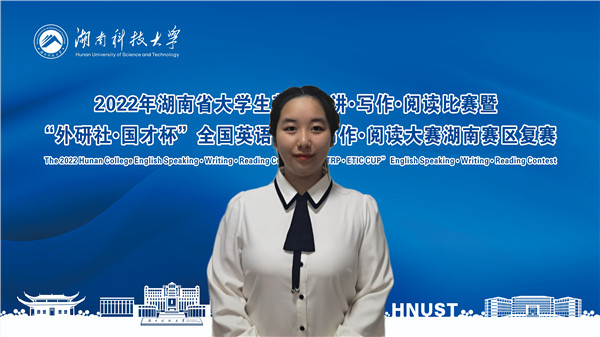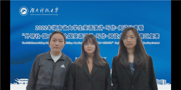 11月18日至20日,2022年湖南省大学生英语演讲•写作•阅读比赛暨“外研社•国才杯”全国英语演讲•写作•阅读大赛湖南赛区复赛以线上方式进行。本次大赛由湖南省教育厅主办,湖南科技大学承办。大赛吸引了全省52所本科院校代表同台竞技。最终,永利官网派出的三组选手凭借在英语演讲、英语阅读和英语写作三项比赛中的稳定发挥,成功斩获团体二等奖,以及一等奖2项,二等奖4项和三等奖3项。