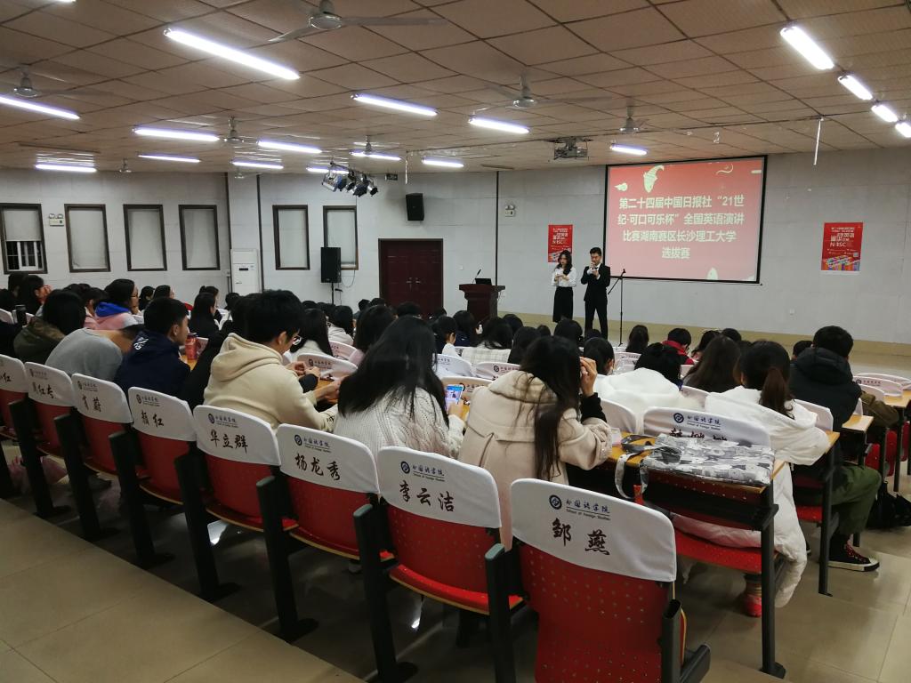 11月13日,外国语学院承办的第二十四届“21世纪·可口可乐杯”全国英语演讲比赛湖南赛区永利集团88304官网校园选拔赛在云塘校区文科楼A100圆满落幕。