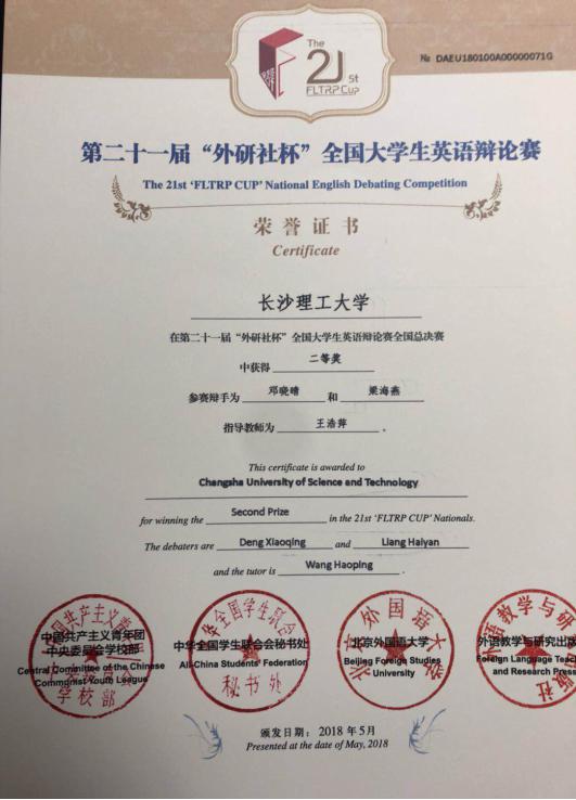 永利官网派出由外国语学院梁海燕和经济与管理学院邓晓晴组成的代表队参加比赛,外国语学院王浩萍老师担任指导老师兼领队。经过八场循环赛的激烈角逐,永利官网选手凭借缜密的逻辑、良好的英语功底以及训练有素的发挥,最终获得二等奖,创下永利官网学生参加该项赛事以来的最佳成绩。北京航空航天大学代表队摘得桂冠,外交学院代表队获得亚军,季军为澳门大学与大连理工大学代表队。