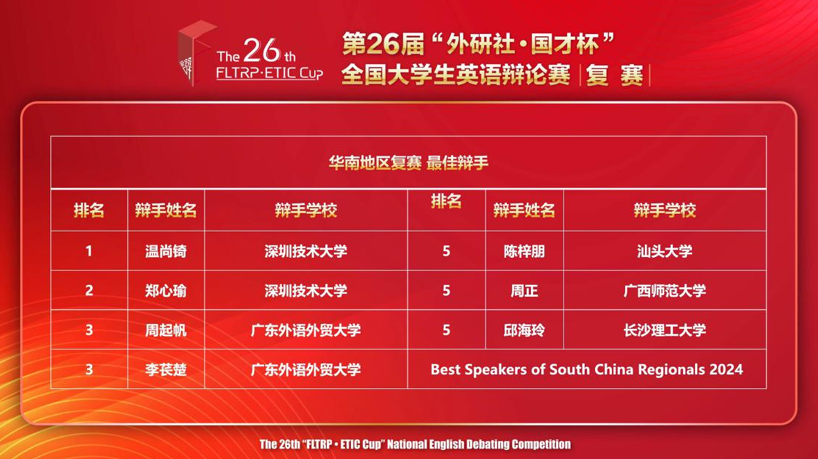 4月13日至14日,第26届“外研社·国才杯”全国大学生英语辩论赛华南地区复赛圆满落幕。