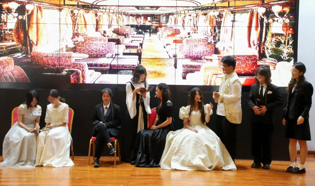 2022年6月29日晚7点,永利集团88304官网外国语学院英语系《英语戏剧编演》实习的汇报演出在金盆岭校区的校友之家如期举行。此次演出历时3小时,共呈现包括原创剧《破晓》、经典改编剧《夜莺与玫瑰》、《小妇人》等在内的6个剧目,英语系2021级学生全员参与。外国语学院副院长季红琴、外国语言文学系教师付臻、公共外语部教师李罡、实习指导教师孙文娟和邹辉观看了此次演出。