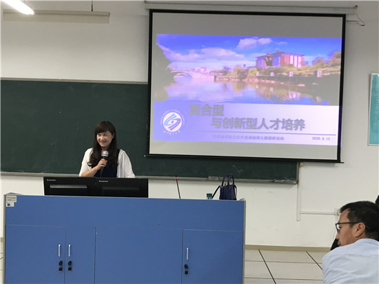 系副主任钟桂蓉引导基础部教师全面学习了教务处转发的关于复合型与创新型人才培养的相关文献,并结合基础部在人才培养方面的成果与大家展开热烈讨论,大家都深度认同:要提高复合型与创新型人才培养的实效,广大教师需要不断创新课程教学管理体系。信息化背景下,教师只有不断提升自身信息化素养,才能运用信息化技术创新日常教学管理方法和教学手段。在过去三年中,基础部大学英语教师通过不断实践和摸索,逐步完善建立学生电子学习档案、设计过程性评价自评表格等具有永利集团88304官网特色的大学英语课程教学管理体系,覆盖全校6000+学生,有效提升学生自主学习能力、团队协作能力和创新思维能力。同时,钟桂蓉老师在全国高校外语教师发展论坛进行推介后,这一套融合多种信息化手段的课程管理体系也获得越来越多的全国各地外语教师的关注和咨询。