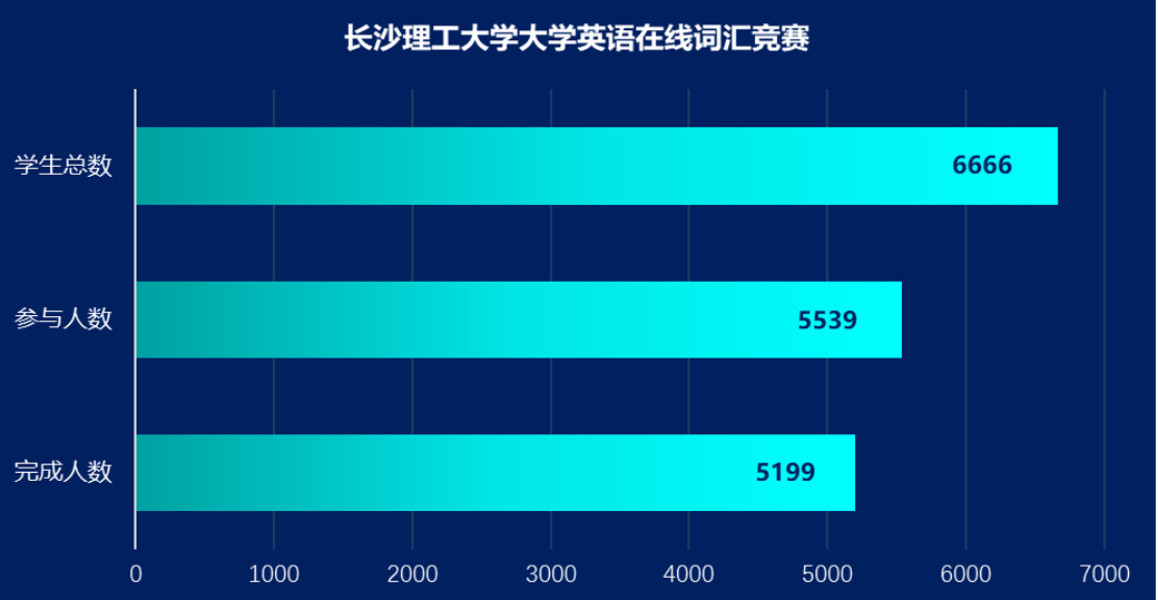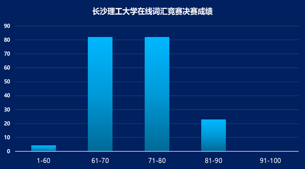 此次大学英语在线词汇竞赛为响应疫情期间“停课不停教”“停课不停学”的号召,秉承“以赛促练”、“以练促学”的理念,是检测学生前期在线自主学习成果的有效手段之一,也成为永利集团88304官网大学英语在线教学中第二课堂的形成性评价方式之一。在线词汇竞赛突破了疫情期间地域的限制,覆盖全校新生,参赛人数创下新纪录。竞赛流程简单易操作,学生在家手机登陆同时参与答题,竞赛成绩一键导出,奖项自动生成,节约了组织传统竞赛所需耗费的大量人力物力。