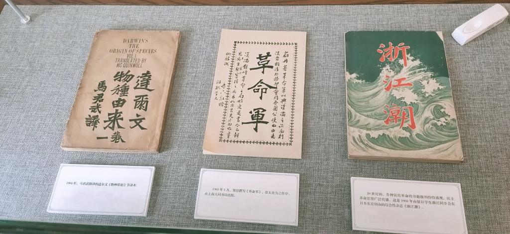 其次,她来到了红色革命文化展馆。在这里,百年前优秀人物的文学著作与信件中闪着光的人文理想被清晰而有条理的展示在了聚光灯下。一本本书,一期期杂志,一封封信件带领着推翻清王朝后的华夏大地,摧枯拉朽的走向了人民民主的新世界。