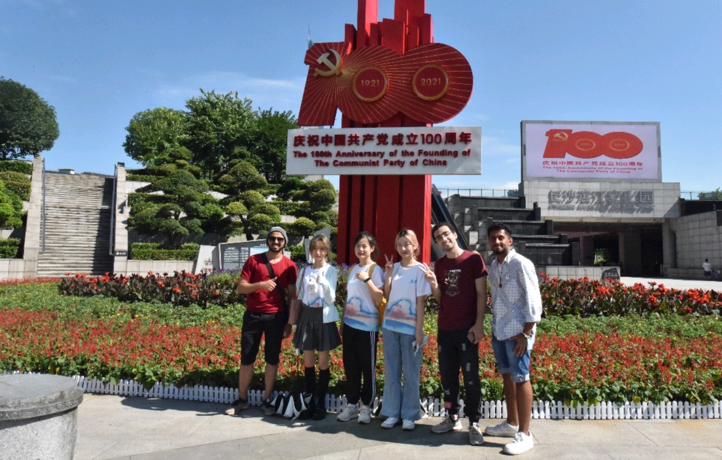 首先,她向来自埃及与也门的外国友人们就位于公园中央的苏联红军烈士纪念碑进行了解说。在烈士纪念馆大厅的前面矗立着一块基石,上面刻着:“近百年来特别是近三十年来为中国人民解放事业而光荣牺牲的湖南人民英雄烈士们永垂不朽”。纪念馆两侧为陈列厅,陈列了7万多名湖南烈士的名字。