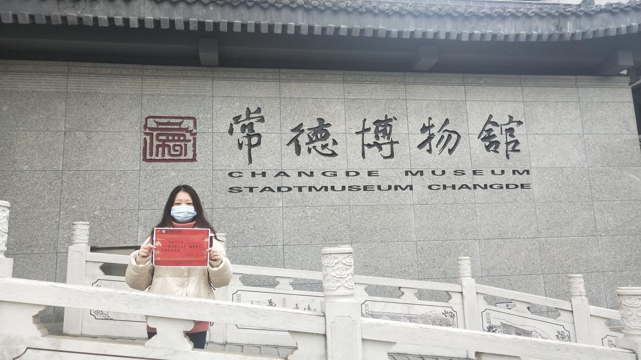 2021年2月6日,为响应学院号召,提高社会实践能力,加强对常德市优秀传统文化的了解与传承,并深入理解常德当地的抗战历史,外国语学院翻译1802班章司雨同学来到常德市博物馆,开展“翻译医生”社会实践活动。此次活动,她提前在网上查阅相关资料,在参观展场馆时收集现场文字和图像材料,最后完成翻译和校对工作。