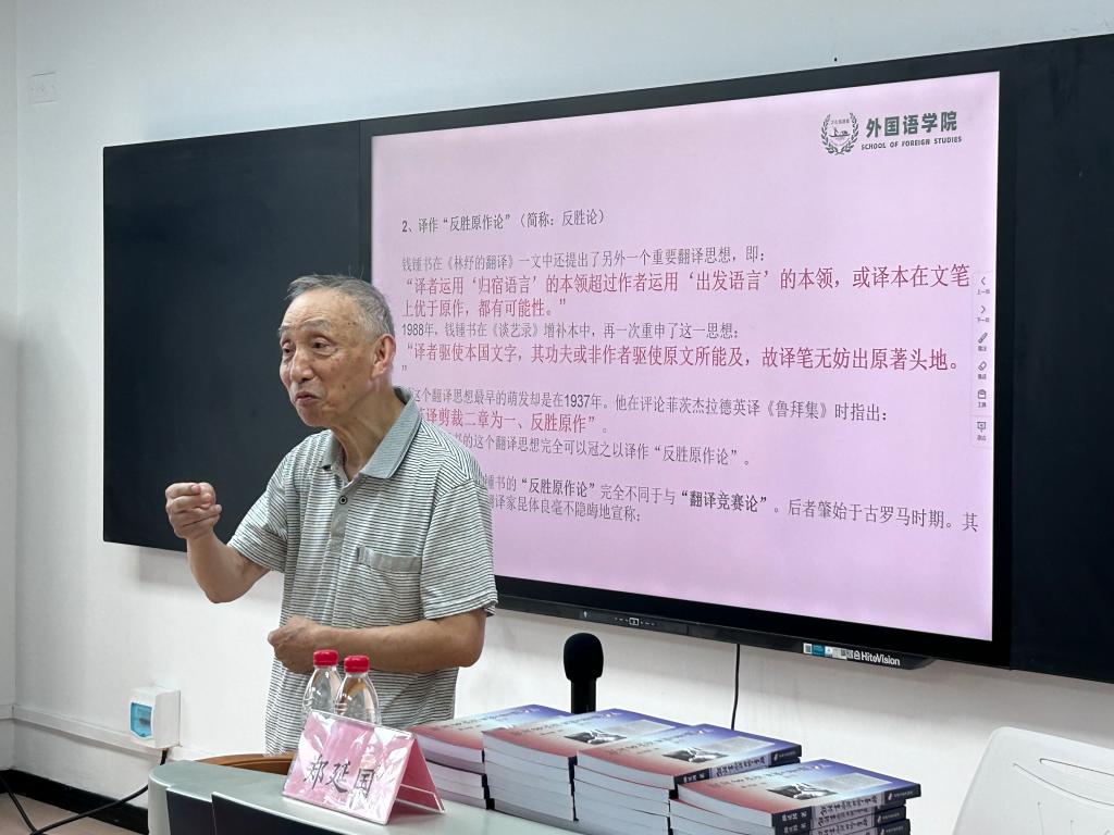 “从事教书育人和关心下一代工作是我的毕生志愿,此次能够为新生上开学第一课我感到非常高兴,希望能让更多学生通过我的课堂感受到翻译的魅力与精髓,帮助更多人学好翻译。”9月19日下午15:00,78岁的银发老人郑延国教授在永利集团88304官网金盆岭校区3教416多媒体教室给全体23级研究生新生开展云影讲坛讲座,讲授入学教育第一堂学术课——钱钟书学术思想和翻译两论。