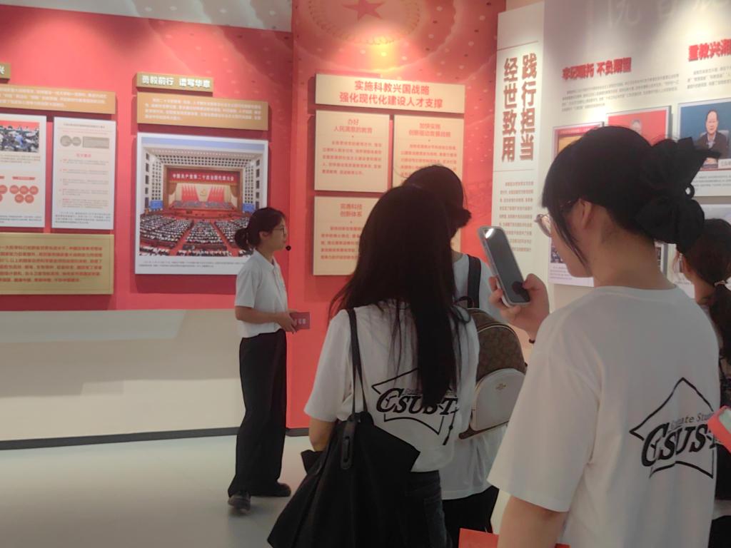 “‘三全育人’教育基地内容丰富、展览形式多种多样。我不仅体验到了艺术与科技相融合之美,还感受到了长理丰厚的人文底蕴!永利集团88304官网在自我成长的同时,不忘积极践行高校的社会责任与担当,积极服务国家战略与地方经济社会发展。作为新时代青年,我们应当把论文写在祖国的大地上,把“小我”融入“大我”!”来自英语笔译专业的易文炫如是说。