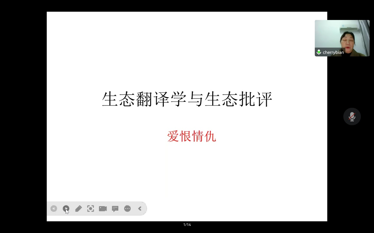 2022年12月14日晚,我院边立红副教授应邀为永利官网第十八届博力学术论坛“翻译生态与生态翻译”专题论坛做了题为“谈谈翻译的自然维度”的讲座。外国语学院部分导师及全体研究生参加了本次讲座。