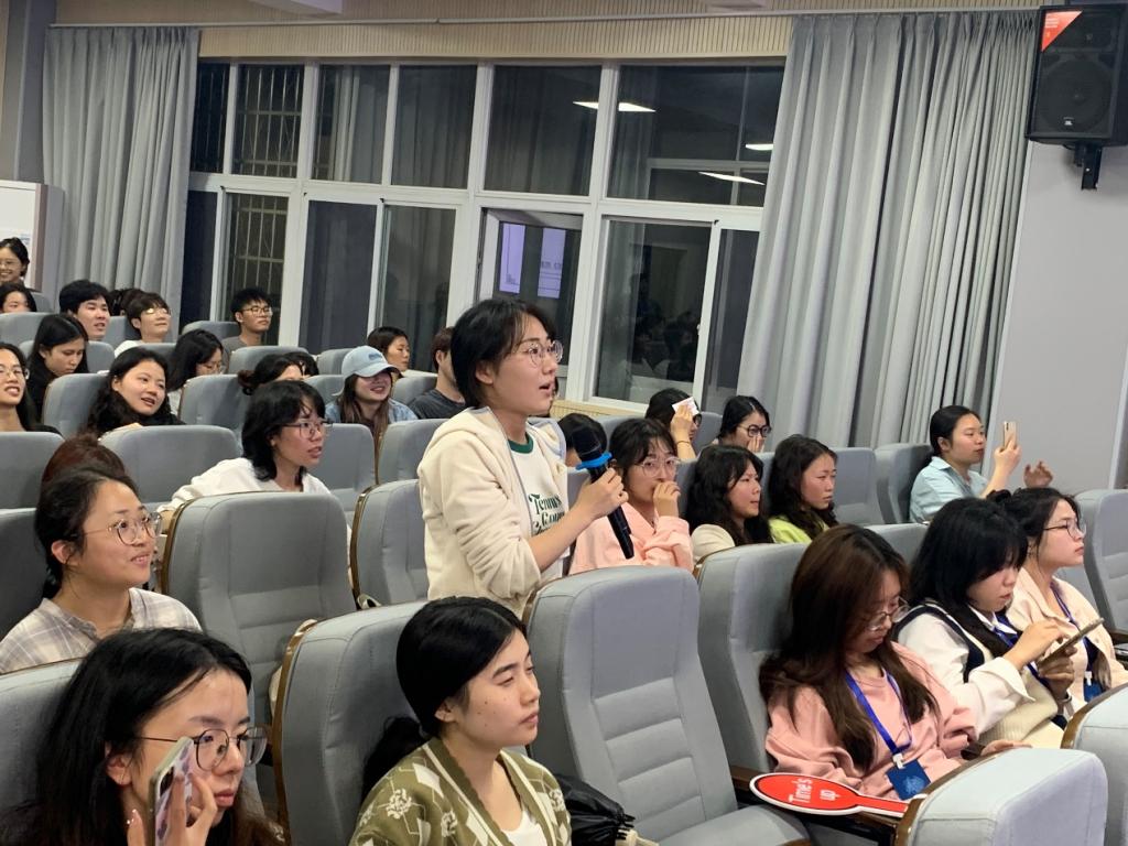 互动环节分为“诗句填空”和“读译文猜原诗”两部分,同学们热情高涨,踊跃举手参与互动问答,展现出了自身良好的文化素养。