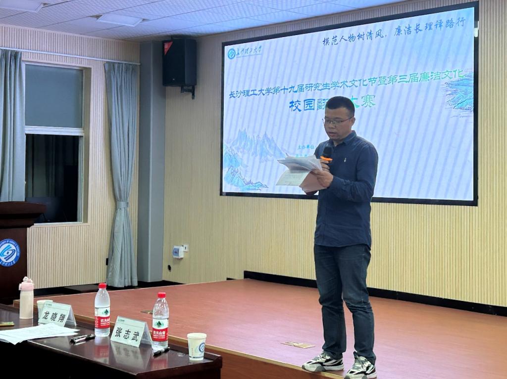 清若荷花不染尘,廉如梅花不畏寒。为深入推进长理廉洁文化建设,营造“学廉、倡廉、崇廉”良好的校园氛围,鼓励广大学子通过翻译展现学识,将“廉洁”二字永驻心间,永利集团88304官网外国语学院于4月18日晚上7点在3教321报告厅举办了校第十九届研究生学术文化节暨第三届廉洁文化校园翻译大赛决赛。竞赛办主任张志武、英语系副主任龙晓翔、研究生辅导员龙洋出席现场并担任评委。