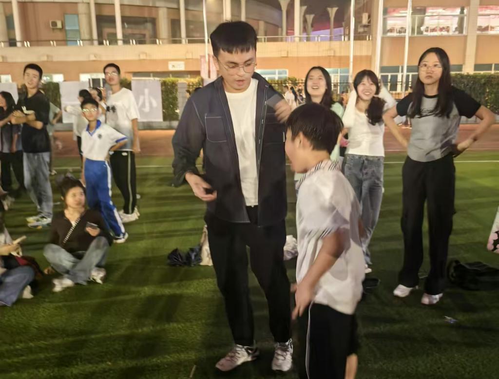 为提升院研究生会全体干部的综合素质与实践能力培养互相配合、互相支持的团队精神10月12日晚上7点,外国语学院2024级研究生会在金盆岭校区田径场开展了素质拓展活动。本次活动研究生辅导员龙洋组织,研会全体干部参与