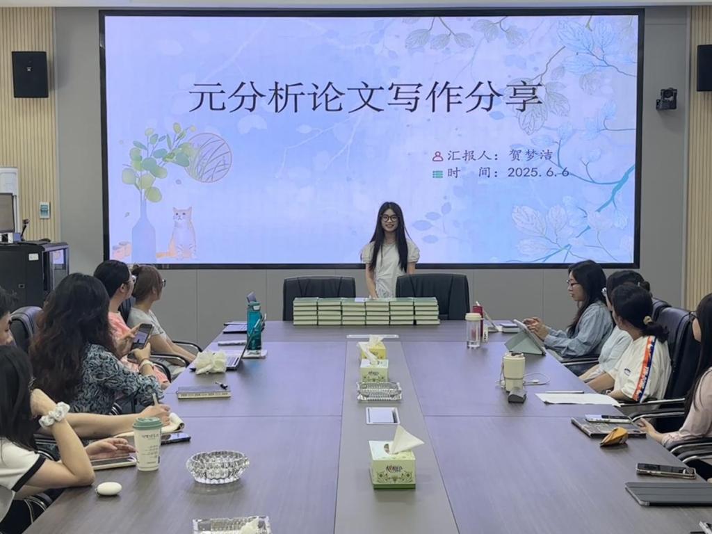 为培养外国语学院研究生的科研思维,6月6日下午3院在金盆岭校区三教214会议室举办了一场别开生面的科研经验分享会。本次活动姚尧副院长主持并特别邀请到院两位优秀研究生代表——2022级外国语言文学专业研究生贺梦洁和成功申博北京外国语大学的肖璇钰担任主讲,为二十余名参会同学打造了一场高规格、高质量的学术交流活动。