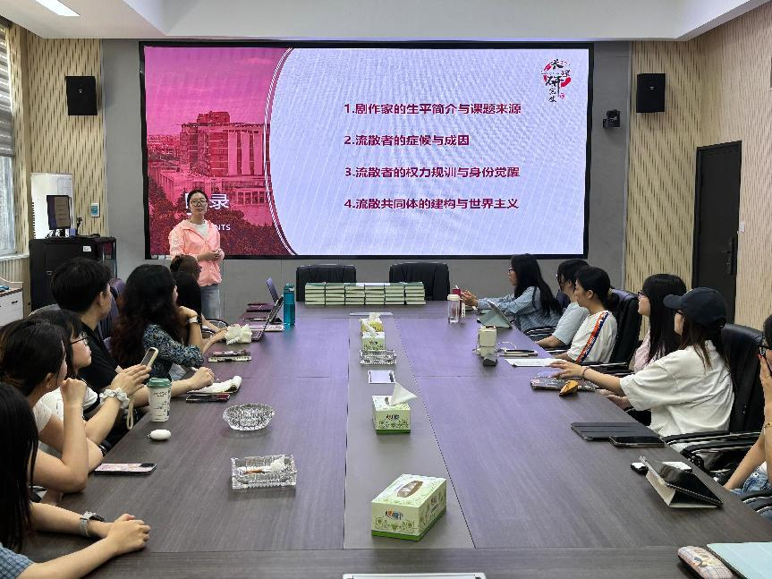 活动伊始,肖璇钰以自己撰写的论文《南非戏剧〈天堂正在关闭〉研究》为例,深入浅出地分享了她的科研历程。她首先介绍了剧作家的生平背景及课题来源,随后从“流散者的症候与成因”“流散者的权力规训与身份觉醒”“流散共同体的建构与世界主义”个方面展开分析,带领同学们领略了非洲文学之美。紧接着,贺梦洁聚焦于“元分析论文写作”,系统性地讲解了元分析的研究方法、数据整合技巧以及论文撰写规范。她结合自身经验详细介绍了如何高效检索文献、筛选有效数据运用统计工具进行分析她们一致认为,科研并非一蹴而就,需要耐心和坚持,而掌握科学的研究方法能事半功倍。