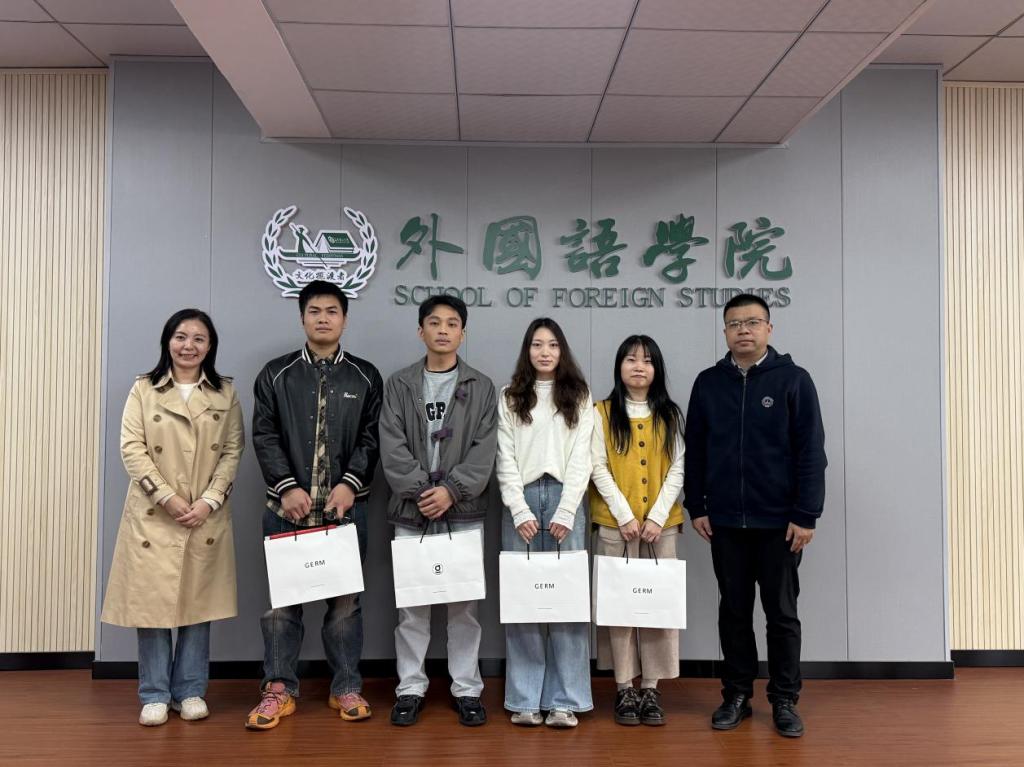 仪式第二环节,为在此次主题论坛论文征集活动中获奖的学生颁发证书与奖品。两位一等奖获奖者进行优秀论文分享,刘若松以《音乐训练对听障人群言语感知的影响:来自元分析的证据》阐述音乐训练对听障人士的积极作用;薛兰馨通过《人工智能时代英语专业学生口语自我概念与焦虑新探》分析新时代英语专业学生的口语焦虑与期望。