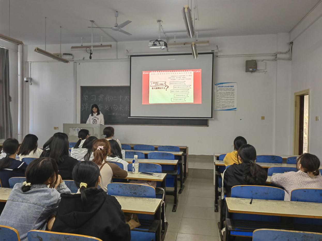 以班级团支部为单位,分别开展了主题演讲、朗读重要讲话文件、学习寄语、观看二十大视频等形式多样的活动。在各团支书的组织下,同学们学习了二十大相关理论知识,感悟了党的二十大精神,了解了二十大的重要意义,领会了中国式现代化全面推进中华民族伟大复兴的使命和任务。