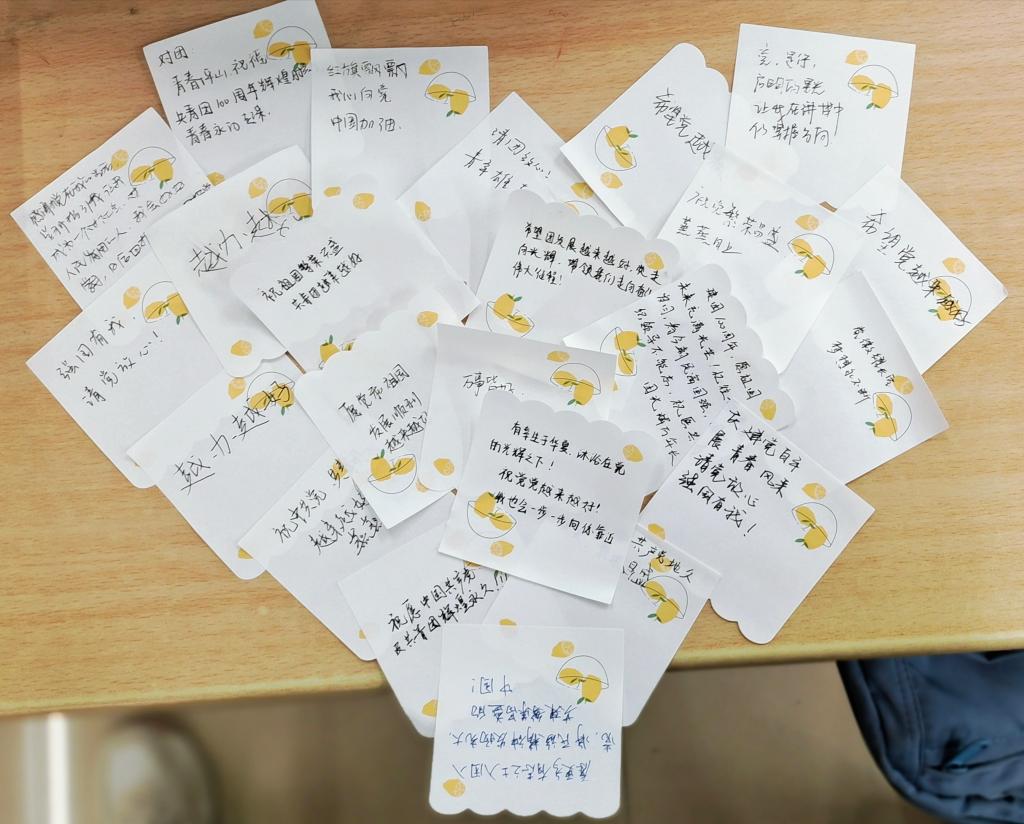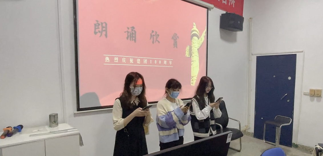 2022年4月29日至5月2日,各团支部围绕 “学习百年团史、喜迎二十大召开”和“百年芳华,青春长理”开展了线上线下主题团日活动。各团支部采取多种形式开展学习和实践活动,英语1902团支部通过小卡片分享的形式暖心打造“青春加油站”,翻译2002团支部写下对中国共产党和中国共产主义青年团的青春寄语,翻译2101团支部通过诗歌朗诵表达团情,英语2102团支部通过8个小剧场演绎了团的故事……各支部积极学习习近平总书记在中国人民大学考察时的讲话,重温习近平总书记在纪念五四运动 100 周年大会上的重要讲话,通过分享交流大学生活中奋发向上的故事用身边人身边事感染新时代外语青年在新征程上听党话、跟党走。学院派出“红色使者”翻译团成员在各支部进行宣讲,讲述外语青年用英语专业知识助力红色基因传承的事迹故事。