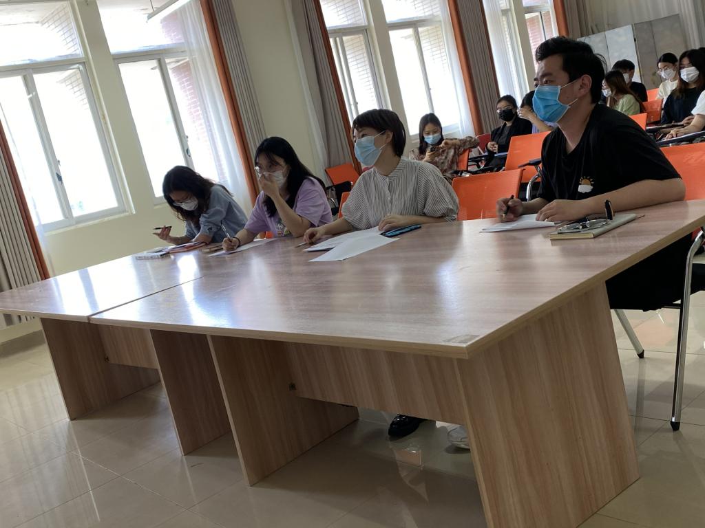 20224月12日下午14:00,外国语学院于云塘校区文科楼A503开展 “五四评优”先进团支部答辩活动。学院团委书记武巧琳、年级辅导员龙洋、陈若晨、毛婕以及团委学生会主席团李超、吴紫怡出席担任本次答辩的评委,各团支部团支书、班长参加答辩,组织部王雯辉主持本次活动