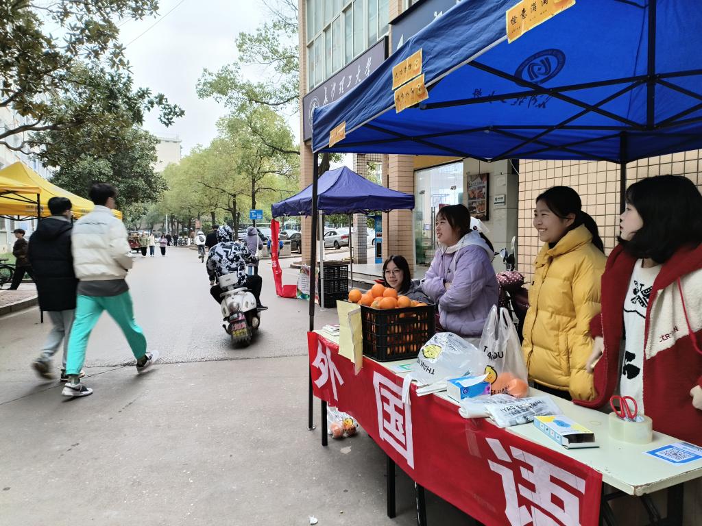 外国语学院本次参加活动的志愿者共有26名,在12月19日至12月21日内采取线上线下两种方式进行,线下售卖地点位于西苑食堂摆点处,售卖的橙子数量总量达667.8斤。活动期间,志愿者们认真负责,积极向同学们推销并介绍活动意义,采取多种方式吸引顾客,如粘贴专属标签、互动游戏等。考虑到课程安排、工作安排、天气等多种因素,志愿者们还采取了“外卖”的方式售卖,送至宿舍楼下。