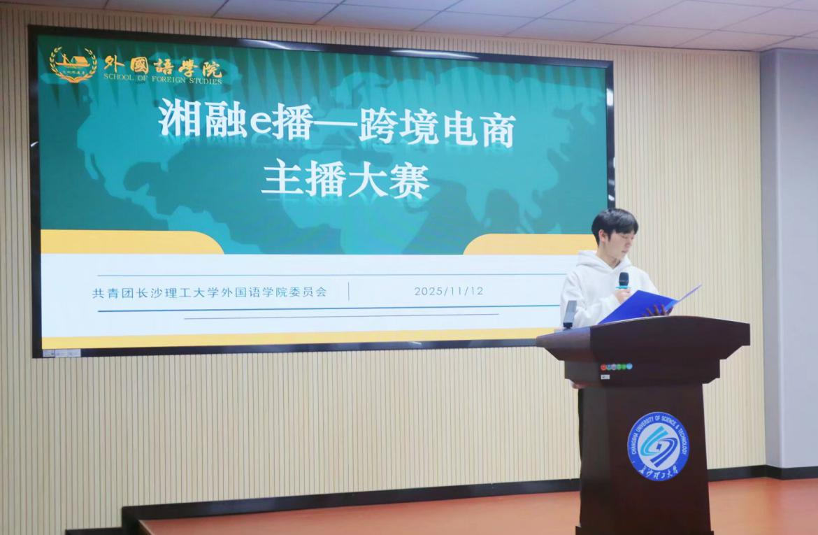 2025年11月12日19:00,外国语学院“湘融e播”跨境电商主播大赛初赛在三教321报告厅(一会场)与229报告厅(二会场)同步举行。院党委副书记周芳、团委书记郭恒、T-GEN Limited企业代表刘华丽、Jessica、助农创业直播团队带队导师田向阳、胡戬及外语专业教师邹辉、李柔共同出席并担任评委,全院33支参赛队伍参与本次初赛选拔。