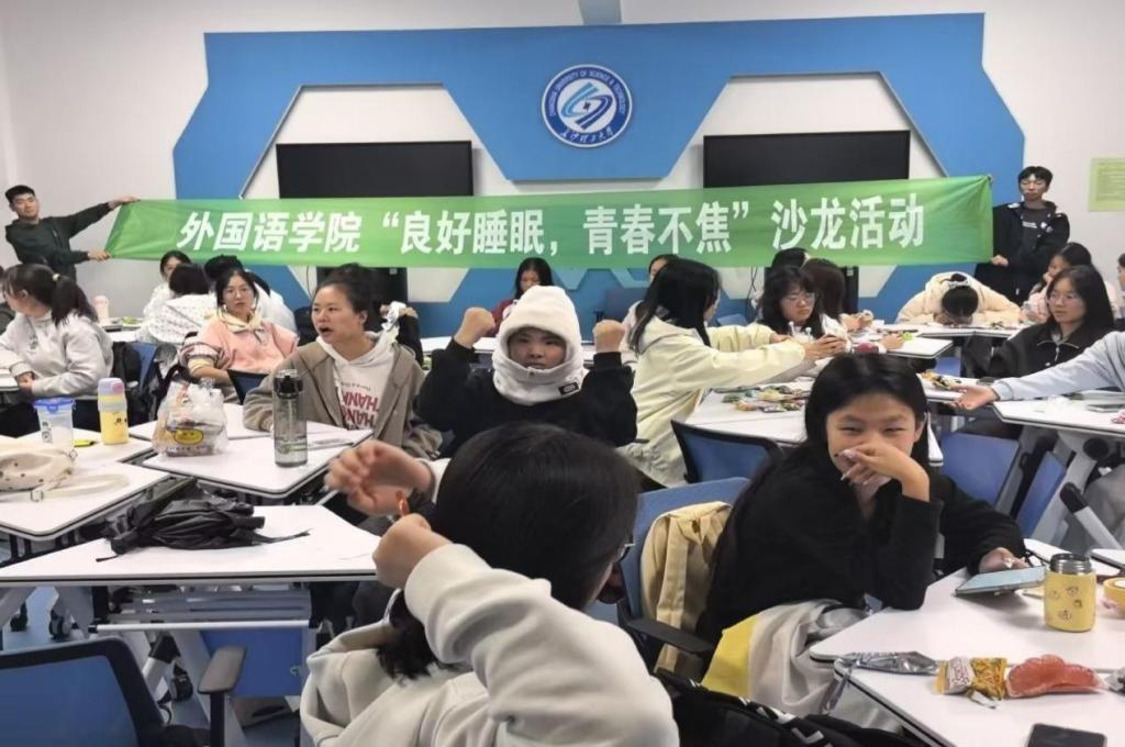 为响应世界精神卫生日号召,切实改善大学生睡眠困扰,永利集团88304官网外国语学院朋辈心理互助部以“解密睡眠密码”为主题于2025年10月30日晚19:00在3教414开展了沙龙活动,活动收获了同学们的积极响应,学院共有40名学生报名参与。