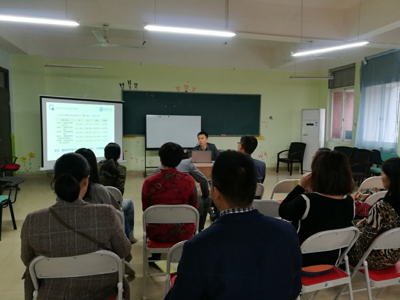 2018年10月16日下午,外国语言文学系党支部在云塘校区文科楼A-503召开了主题党日活动。主题党日活动由党支部书记段静主持,主要包括两项议程:一、陈仁凯书记做了题为《推进改革,深度融合,携手共建育人共同体》的讲座;二、讨论支部对标争先计划实施方案。
