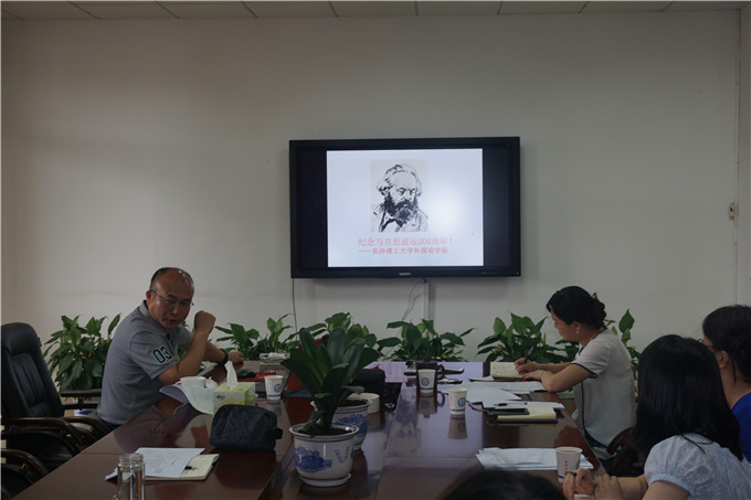2018年6月19日下午,学院行政支部在云塘校区文科楼A603会议室开展纪念马克思诞辰200周年主题党日活动,会议由支部书记龙晖主持。甘为书记为行政支部全体党员上了一堂纪念马克思诞辰200周年专题党课。内容分为三部分:《共产党宣言》的诞生、习近平在纪念马克思诞辰200周年大会上的讲话、中国共产党党史。